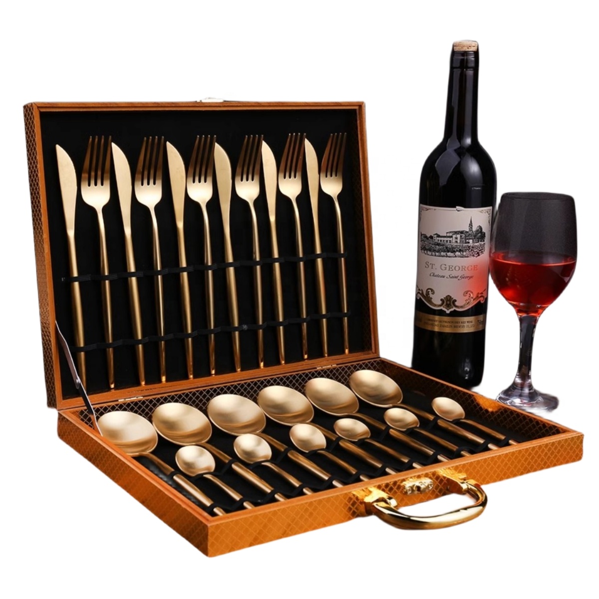 Set di posate di lusso oro opaco Set di posate per nozze in acciaio specchio oro tavola cena tavola d'oro coltello forchetta cucchiaio per ristorante