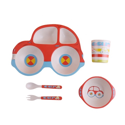 5個の漫画のデザイン赤ちゃんの食器食器セット安全な竹繊維キッズプレートボウルカップフォークスプーンとギフトボックス赤ちゃんの給餌セット
