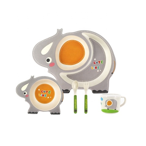 環境にやさしい子供食器食器セットかわいい漫画デザイン5ピース子供竹繊維カトラリーセット